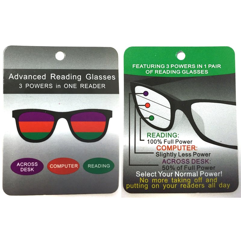 - Progressive lens with 3 powers in one pair (100%~50%)