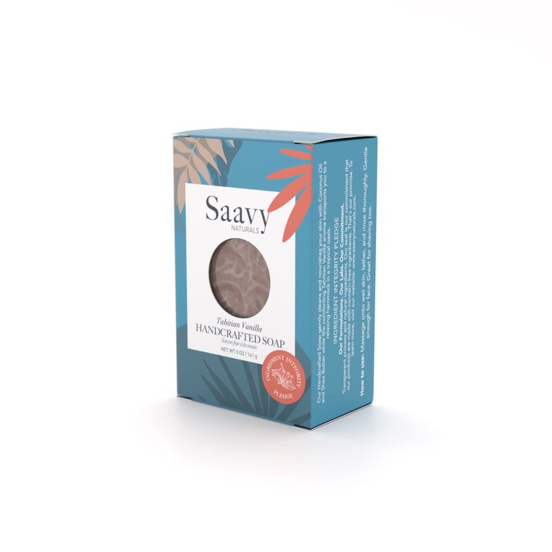 Saavy Naturals Tahitian Vanilla Handmade Soap Bar, Moisturizing Formula Vegan Soaps, Organic Bath Soap Bars for Women, Creamy Lather Soap Gift Sets for Women, 5 Oz, 2 Pack