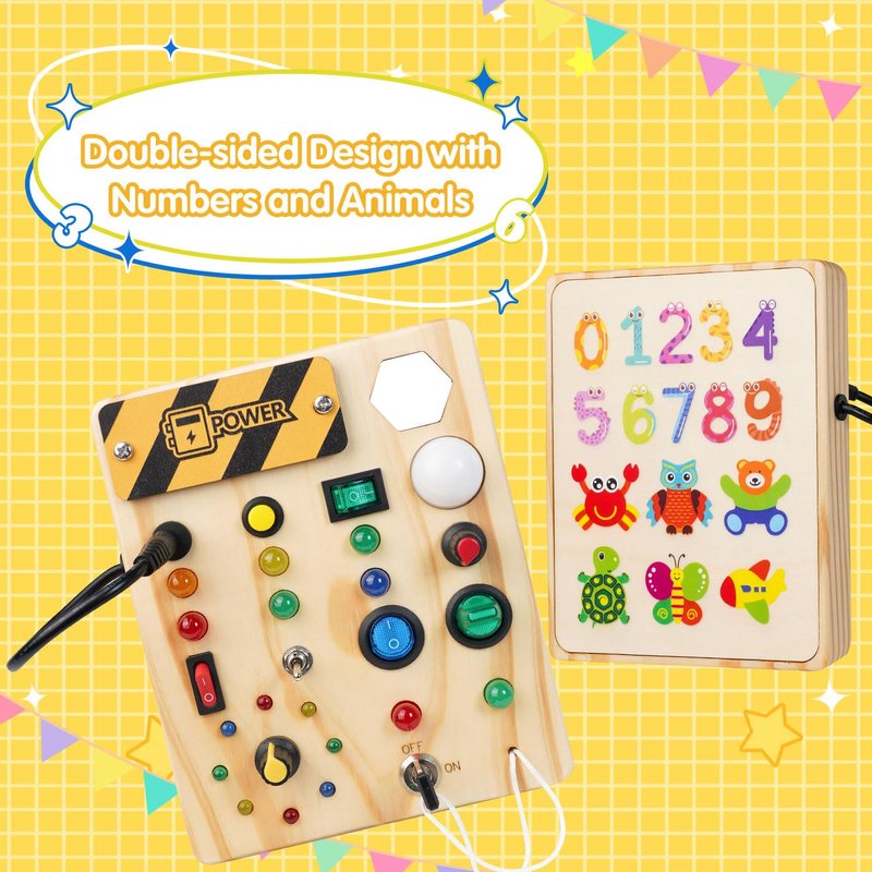 - Innovative Montessori Design: Sabdrau's busy board is crafted with 10 distinct switches and LED lights, each tailored to a unique color or style, fostering interest and engagement in children aged 1-3. The LED brightness is carefully adjusted for young eyes, ensuring a safe and enjoyable play experience