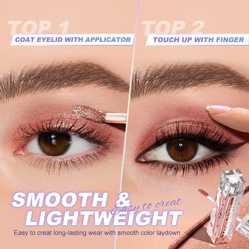 - 【LONG LASTING & SMOOTH & LIGHTWEIGHT】 Pretty silver bronzed gold sparkle liquid shadow. Blends nicely, dries down quickly and doesn't smear. Very pigmented and long lasting, stays on the whole day and looks natural. Easy to creat long wearing effect with smooth color laydown.