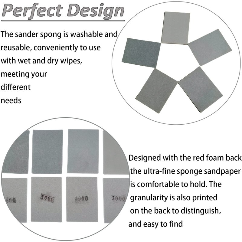 - Perfect Design:Designed with the grey foam back, the ultra-fine sponge sandpaper is comfortable to hold. The granularity is also printed on the back to distinguish,and easy to find