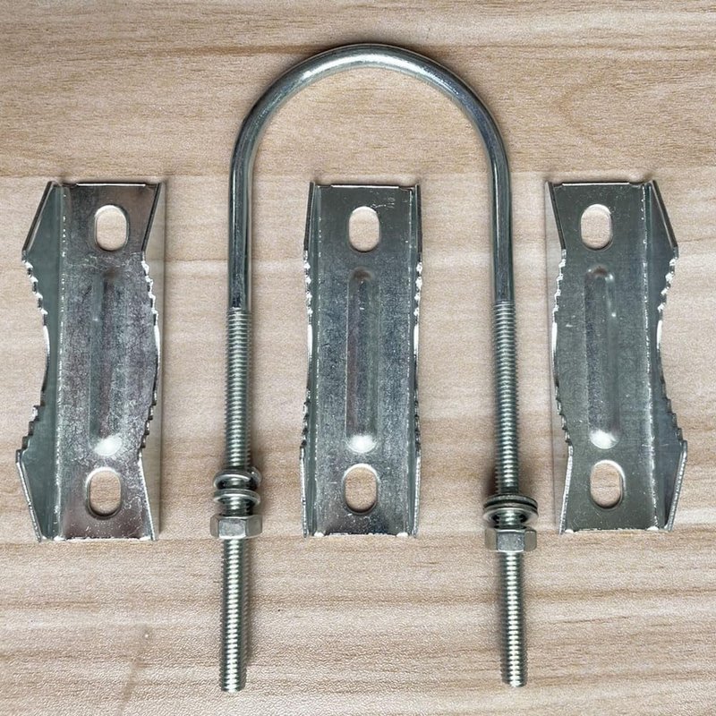 - Double 6mm(M6) u-bolts Mast Clamp, with V Jaw Bracket, applicable field: home, construction, fixed communication antennas, outdoor pipes or poles, fiberglass pull antennas for ensuring the pole note slip down.