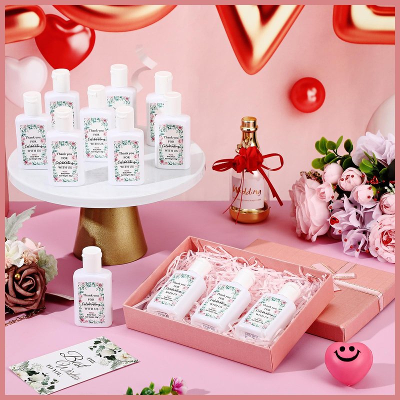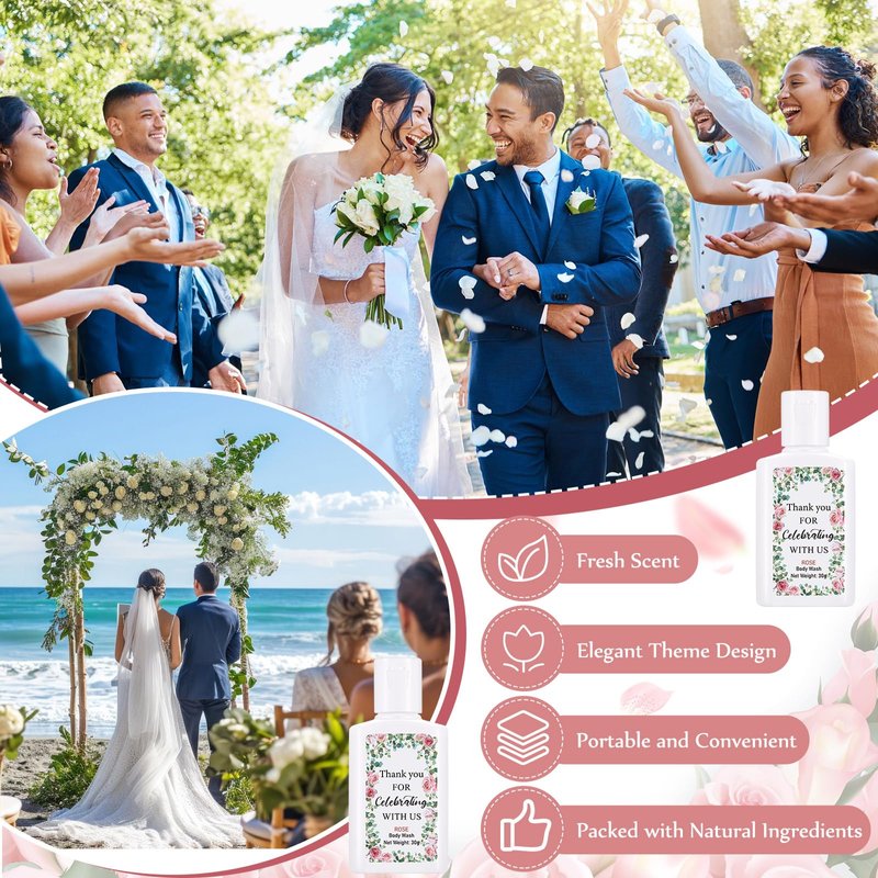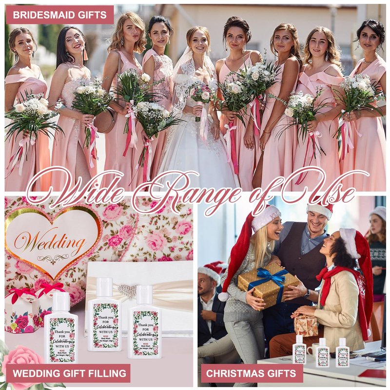 - Elegant Design: the mini shower gel features a rose pattern and comes with the words to create a happy feeling, enhance the party atmosphere, and more accurately express our gratitude to the guests
