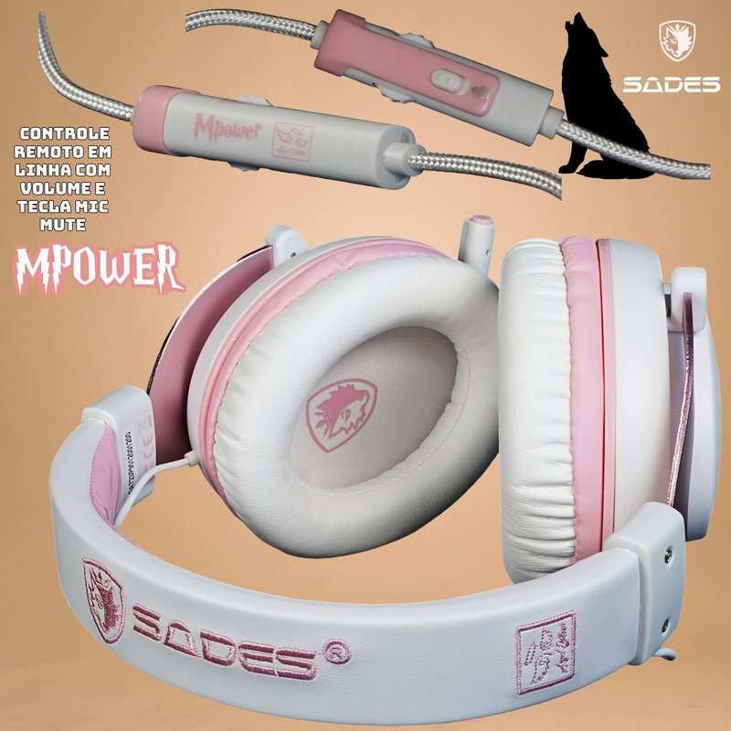 SADES MPOWER Stereo Gaming Headset for PS4, PC, Mobile, Noise Cancelling Over Ear Headphones with Retractable and Flexible Mic & Soft Memory Earmuffs for Laptop Nintendo Switch Games-Angel Edition