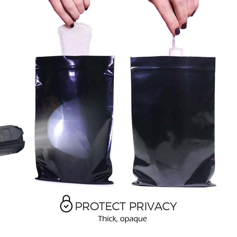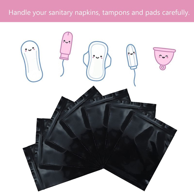 - Private: The tampon disposal bags is a black opaque bag, with a sealable zipper and thick bag to prevent leakage and odour