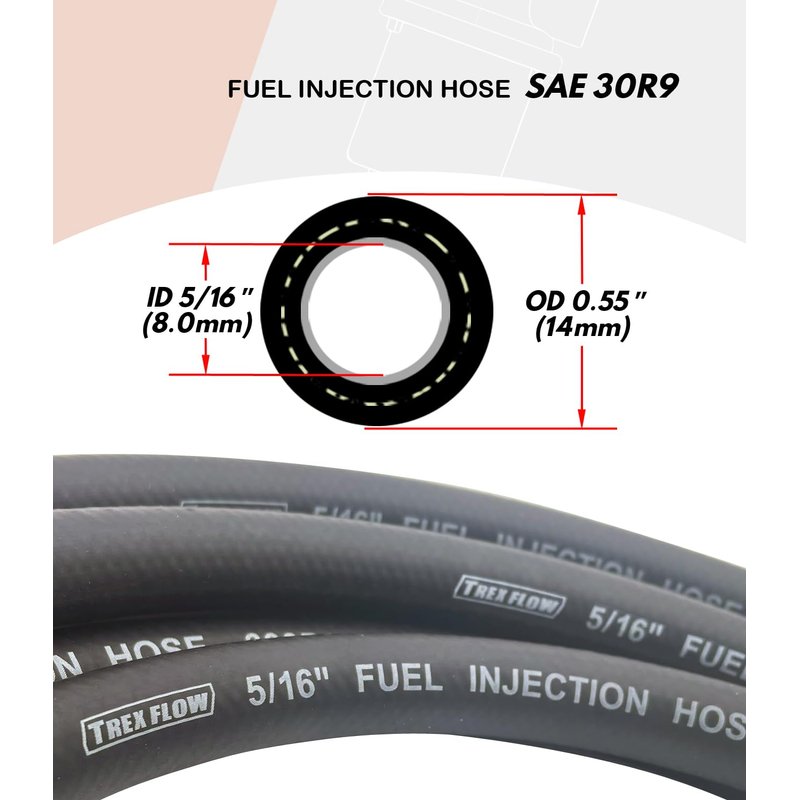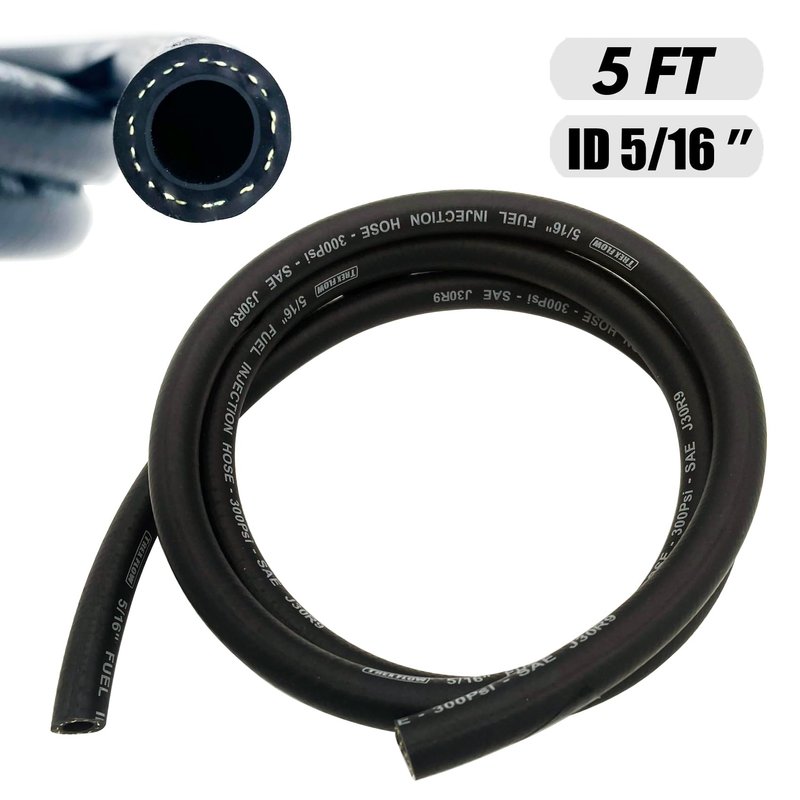 • [Spec.]: SAE30R9/SAE J30R9 rated fuel injection hose; ID 5/16" (8mm), OD 0.55" (14mm); 5FT Length, designed for fuel injection systems.