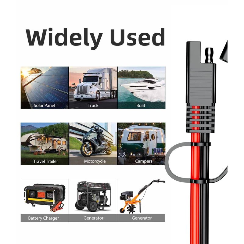 - 【Wide Application】SAE Extension cable for devices with sae connectors. can be widely used in all kinds of vehicles and devices, such as automotive, motorcycle, lawn mower, RV, trolling motor, ATV, kayak, tractor sprayer, power inverter and other devices with sae ports.