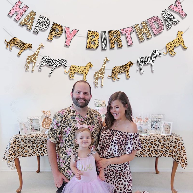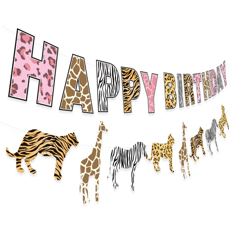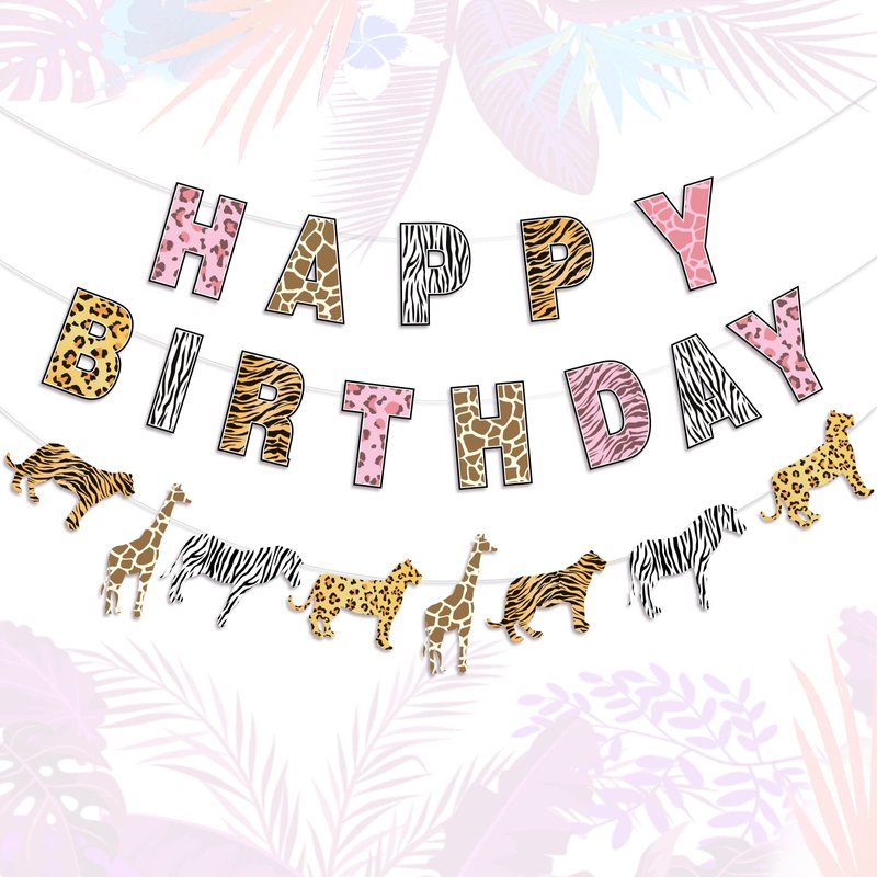 - [Special Design] The banner and garland combine pink and animal patterns, it is the best choice for everyone who likes pink and jungle themes, will make your birthday party even more lively and energetic.