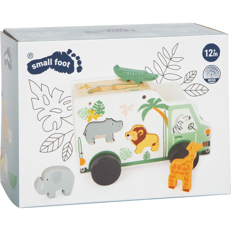 Safari Truck Shape Sorter by Small Foot – 2-in-1 Wooden Car & Puzzle - 6 Piece Sorting Game with Jungle Animals – Playset Teaches Concentration & Motor Skills – Ages 12+ Months