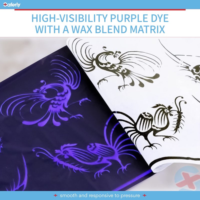 - HIGH-VISIBILITY DYES - The tattoo thermal paper uses high-visibility purple dyes with a wax blend matrix, smooth and responsive to pressure.