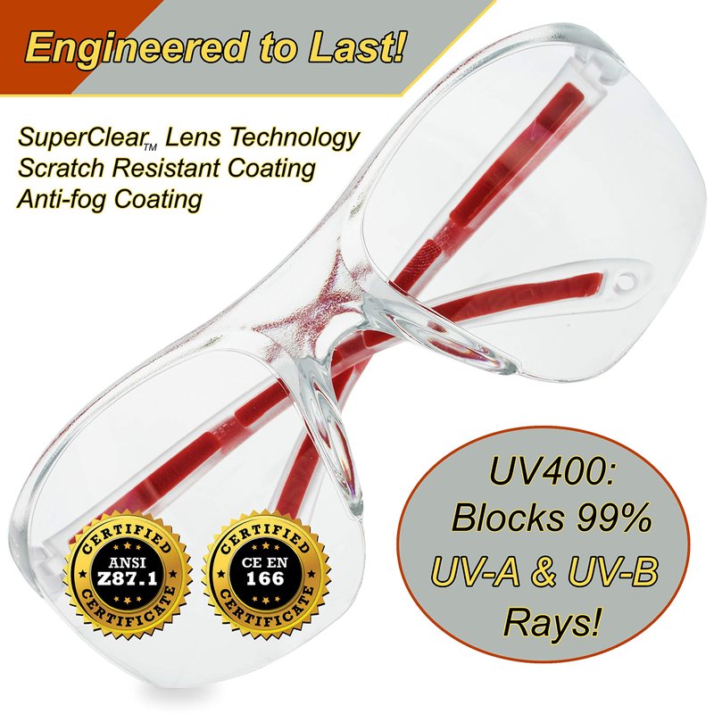 - Z87.1 and CE EN166 High impact certifcations. . . . Clear and tinted block harmful UV rays (A and B)