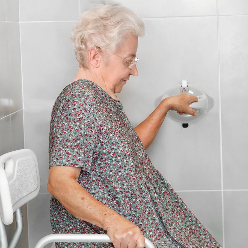 - 【Unique Enhance Safety Design 】The suction shower grab bar has an flexible red indicator design which super easy to check the product whether safety "working". If the red indicator on the pump is visible that means it's lost a bit of suction. Don't worry! you just need repump button until red indicator disappears and then it recover safety condition.
