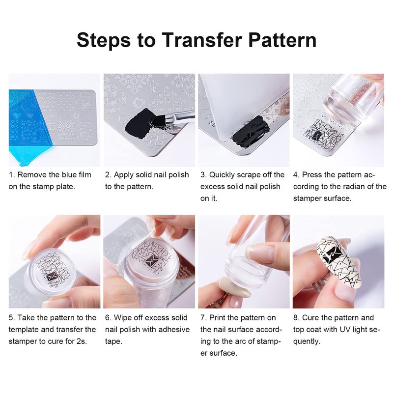 - 【Warm Tips】Just clean the nail french tip stamper or try another stamping polish nail polishes if you can’t pick up patterns. Using scotch tape or lint roller to remove nail polish or dirt from the stamper. DO NOT wipe with acetone, nail polish remover or cotton.