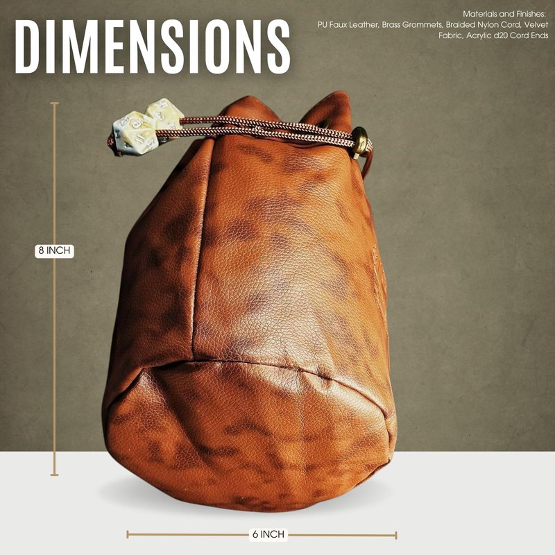 - Stylish Design: Made from high quality chestnut/walnut spotted textured PU leather and the drawstring cord is adorned with 2 real D20 cord ends.