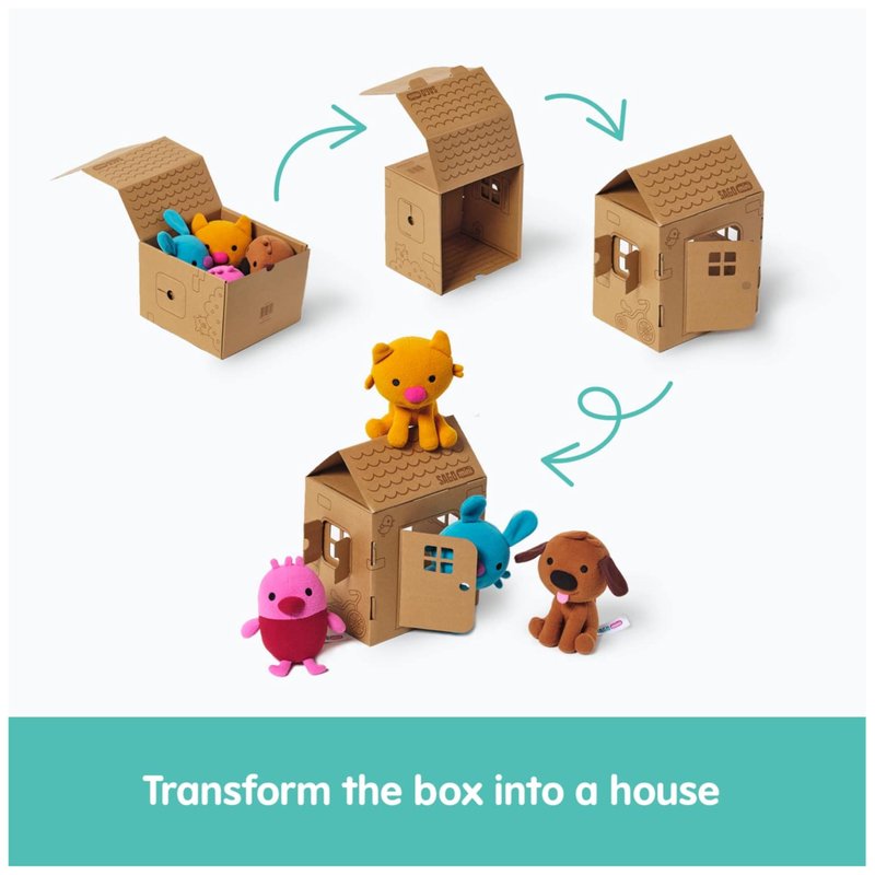 - AMAZING STORYTELLING: Unpack each plushie from the gift box & follow the perforations to transform the package into a cardboard dollhouse, then decorate & use it for creative pretend play adventures