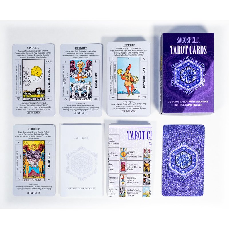 - Classic Tarot Card Set with Meanings on the Cards: Unique with aesthetic reflections of real tarot cards. Original traditional tarot deck structure — 78-card deck with tarot cheat sheet and instruction folder for beginners.