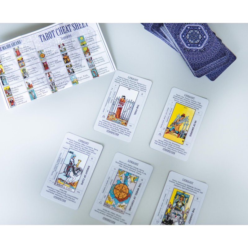 - ✨Beginner-Friendly Tarot Cheat Sheet and Instructions folder included: Our tarot card set comes with a user-friendly folder containing descriptions of each card, astrological meanings and a couple of the most common spreads used. Despite its small and convenient size, this folder is an invaluable resource, specifically tailored to beginners. With simple language and helpful insights, it empowers beginners to conduct meaningful and insightful tarot readings right from the start.