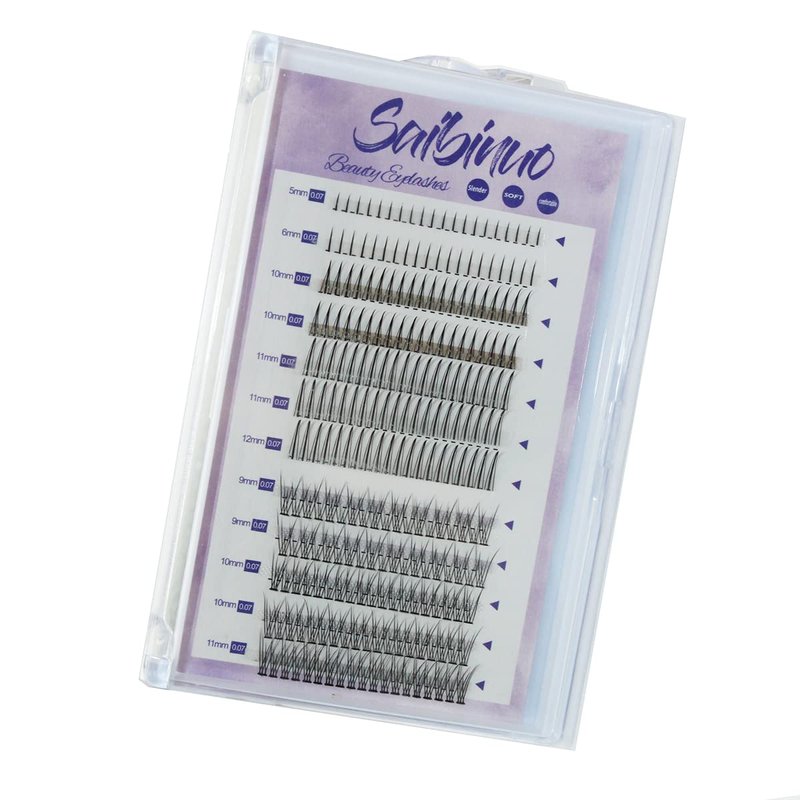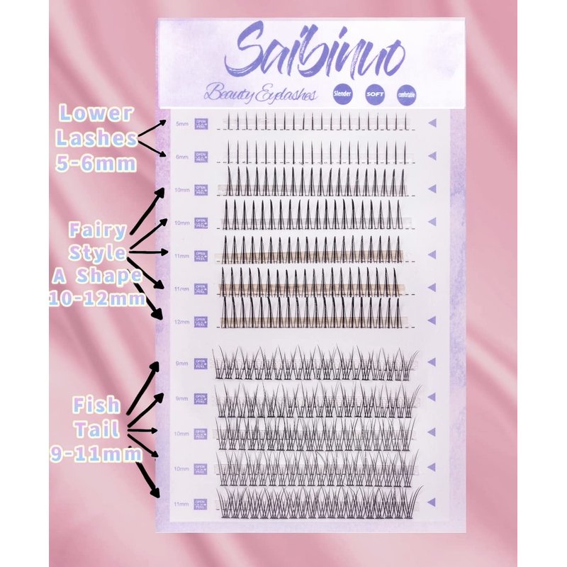 Saibinuo 240pcs Mixed Pack C Curl False Eyelash Extension Individual Lashes Lower Bottom Lash (5-6mm) Fairy Style A Shape (10-12mm) Fish Tail (9-11mm) Natural Clusters, 240 Count (Pack of 1).