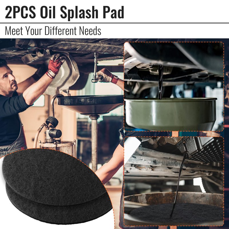 - Wide Application: the oil drain splash pad material is resistant to engine oils, transmission fluids, coolants, brake fluids, brake cleaners, gear oils and other solvents