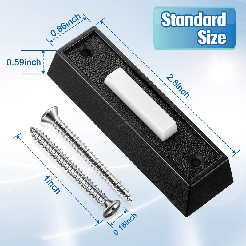 • [Easy to Install]: easily replace your old broken wired doorbell button and wall mount garage door opener switch; The standard size is 2.8 x 0.86 x 0.59 inch (length x width x height), with 2 screws, spacing of screw holes is 2.2 inch; Works with most doorbell chime wired transformer system; Please note that wires are not included