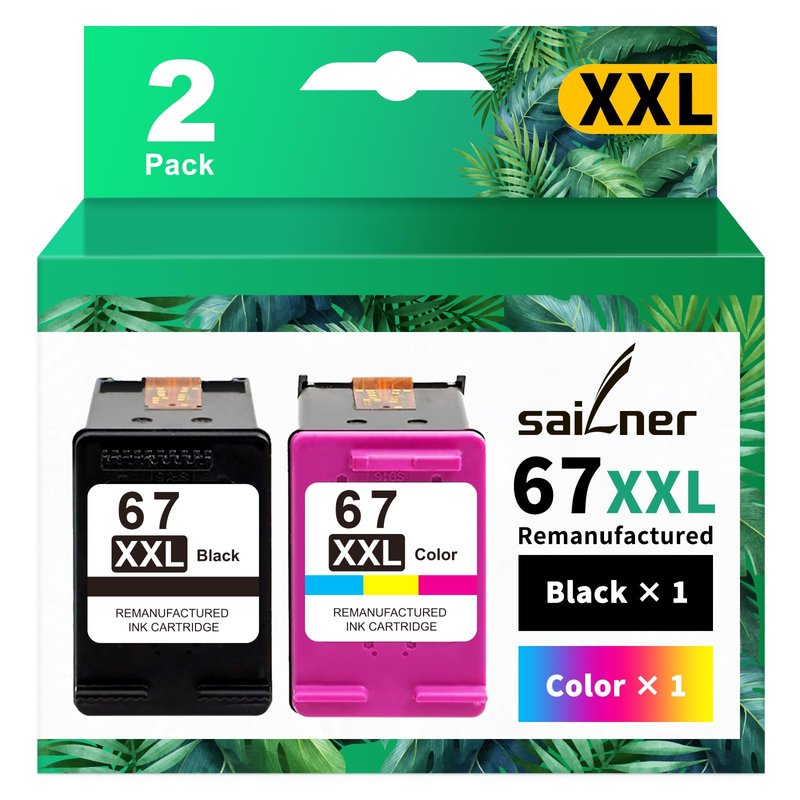 SAILNER 67XXL Ink Cartridge Black/Color Combo Pack Remanufactured Ink Cartridge Replacement for HP Ink 67 67XL 67XXL for HP DeskJet 4155e Ink Cartridges 2755e 4155 2700 Envy 6055 Printer for HP 67XXL