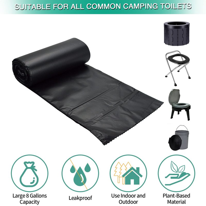 - 🌱[MATERIAL] - Our compostable portable toilet bags are made from plant-based materials that break down and easily decompose in 180 days when placed toilet waste bags in a compost environment. Leaving H2O,CO2 and humus which are durable and nontoxic.