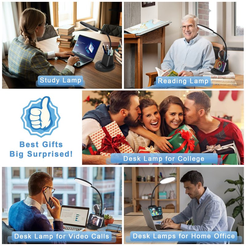 - Pen Holder and Flexible Gooseneck Study Lamp: The small desk lamp is suitable for studying on your desk. The 800 lumens brightness is good enough for learning and reading documents. A cute desk lamp with a pen holder helps you to keep your desk looking neat and organized. You can pack pens, multi-tools, or even a magnifying glass on the holder. The 360°flexible gooseneck is helpful for you to adjust the light when you're working/reading-a suitable bedside reading lamp for college dorm room.