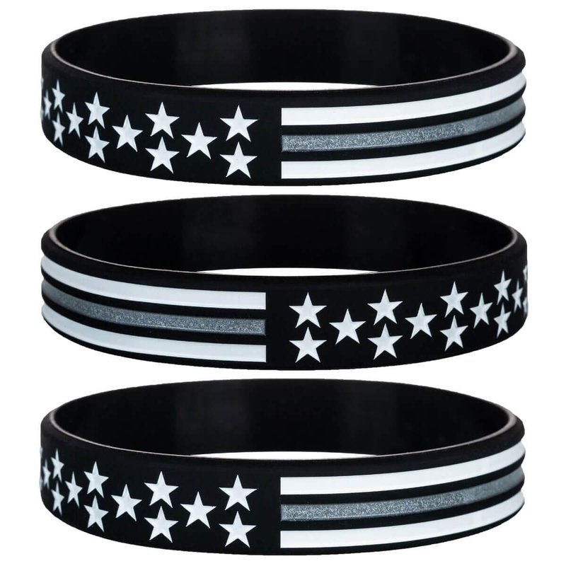 - Thin Gray Line Silicone Bracelet Set - This essential set of silicone bracelets completes any Correctional Officers wardrobe and includes a bracelet for every season and occasion of a Correctional Officers's career. Slightly stretchable for a comfortable fit; Suitable for everyday wear, for patriotic holidays, and for Correctional Officers events.