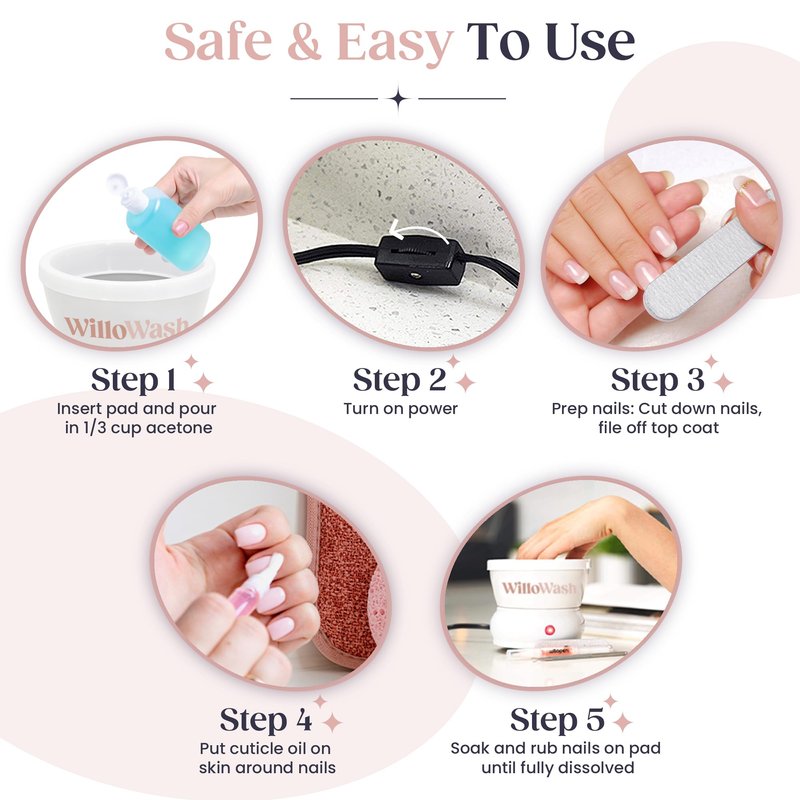 - Specifically Designed for Acrylic and Dip Nails: The WilloWash does not accelerate the removal of gel based products. Remove your fake nails from the comfort of your own home and save time from the nail salon!