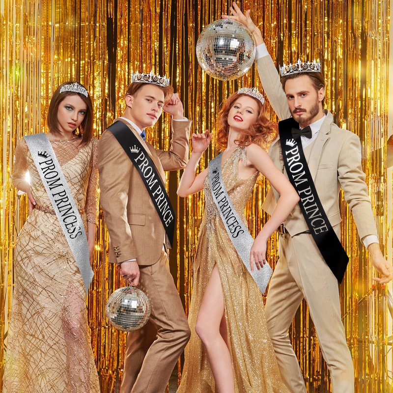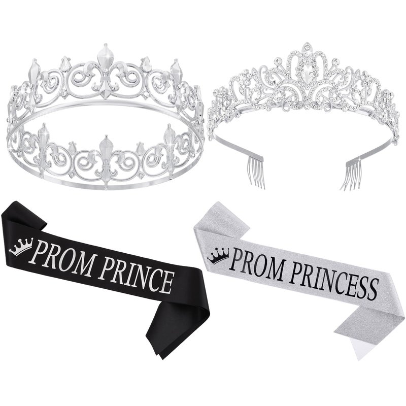 - What You Will Obtain: our package includes prince and princess crown set, prom sashes in black and white, totally 4 pieces, you can wear them with your friends together, enough quantity will satisfy your needs
