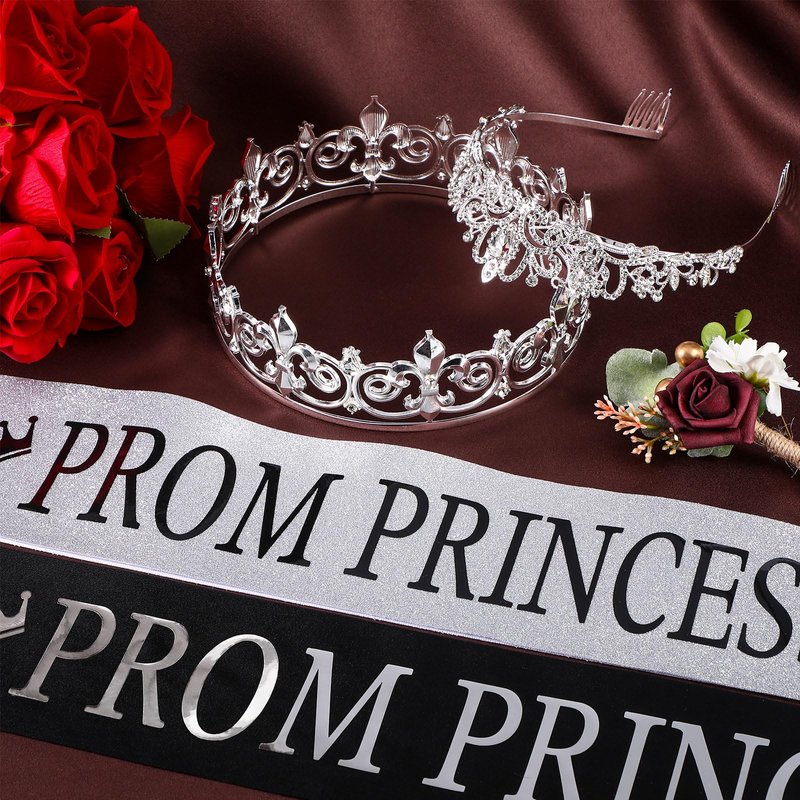 - Size Details: the prom sashes have size in approx. 61.42 x 3.74 inches/ 156 x 9.5 cm, princess crown approx. 5.12 x 1.73 inches/ 13 x 4.4 cm, and prince crown approx. 6.69 x 2.17 inches/ 17 x 5.5 cm, the sashes can be adjusted with pins, please note that pins are not included and confirm size details before your purchasing