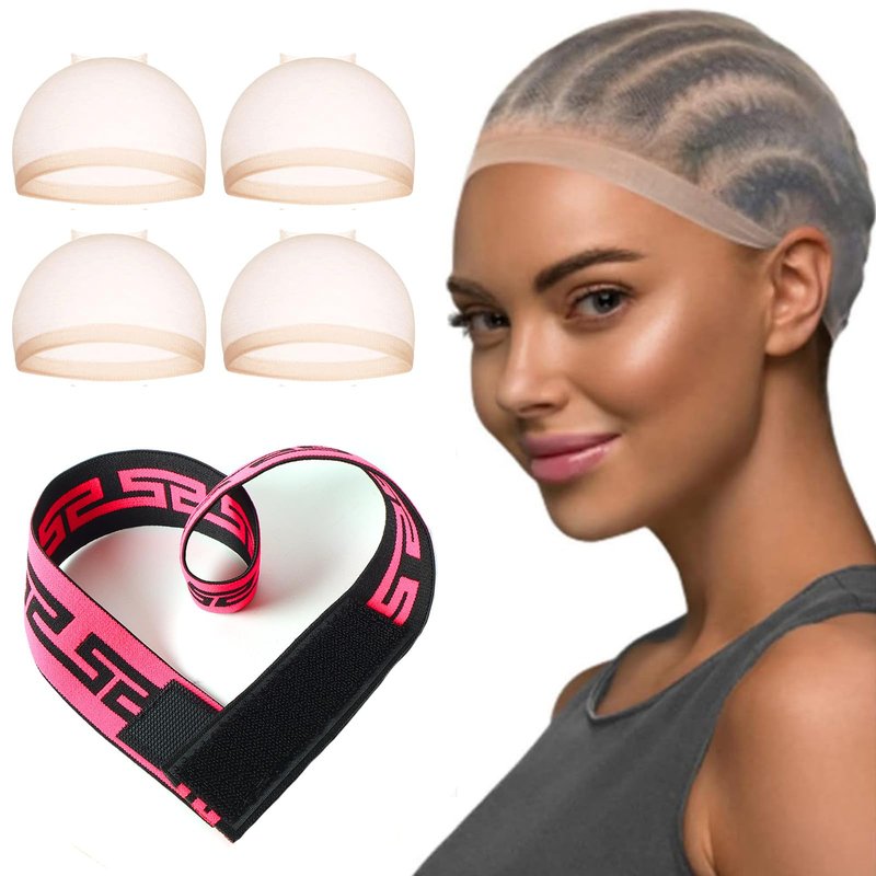 SAKALAKA HD Wig Cap with Strap Elastic Band,4 Pieces Hair Net for Wig, Stretchy Nylon Wig Caps for Women,Strap Elastic Band for Lace Front Wigs(4PCS with Strap Elastic Band)