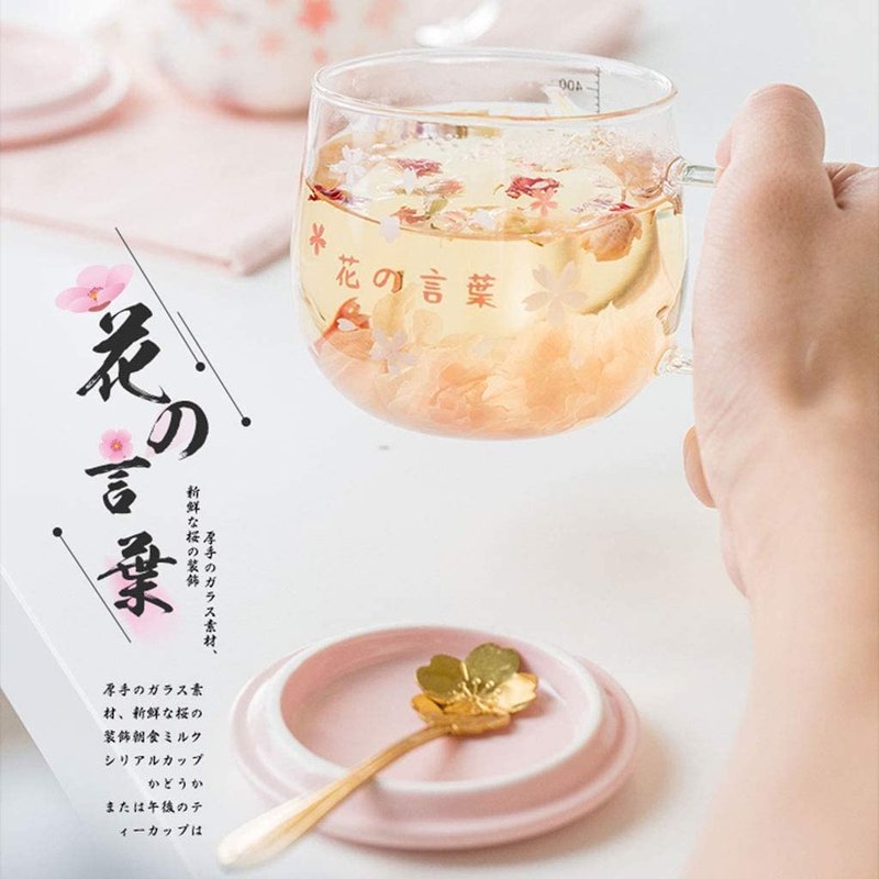 - 【Description of the Cute Sakura Mug】: High borosilicate glass with scale design, fresh cherry blossom embellishment, whether it is breakfast milk cereal cup, or afternoon flower tea cup is suitable