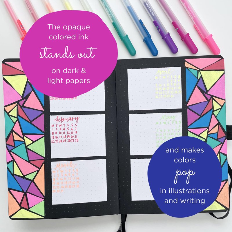 - Bright, Opaque Colored Ink: Gel pens have paint-like colored ink that flows creamy smooth onto light and dark paper