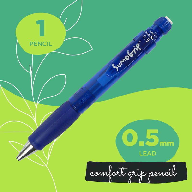 SAKURA SumoGrip Pencil with Comfort Grip - 0.5 mm Ergonomic Mechanical Pencil - Clear Blue