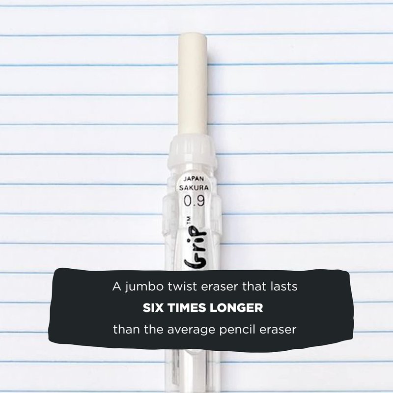 - Long-Lasting Jumbo Eraser: Twist eraser lasts 6 times longer than average pencil eraser