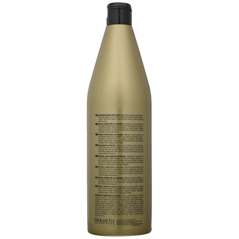 - Salerm Protein Shampoo is especially suitable for use after processing to give hair a protein boost.