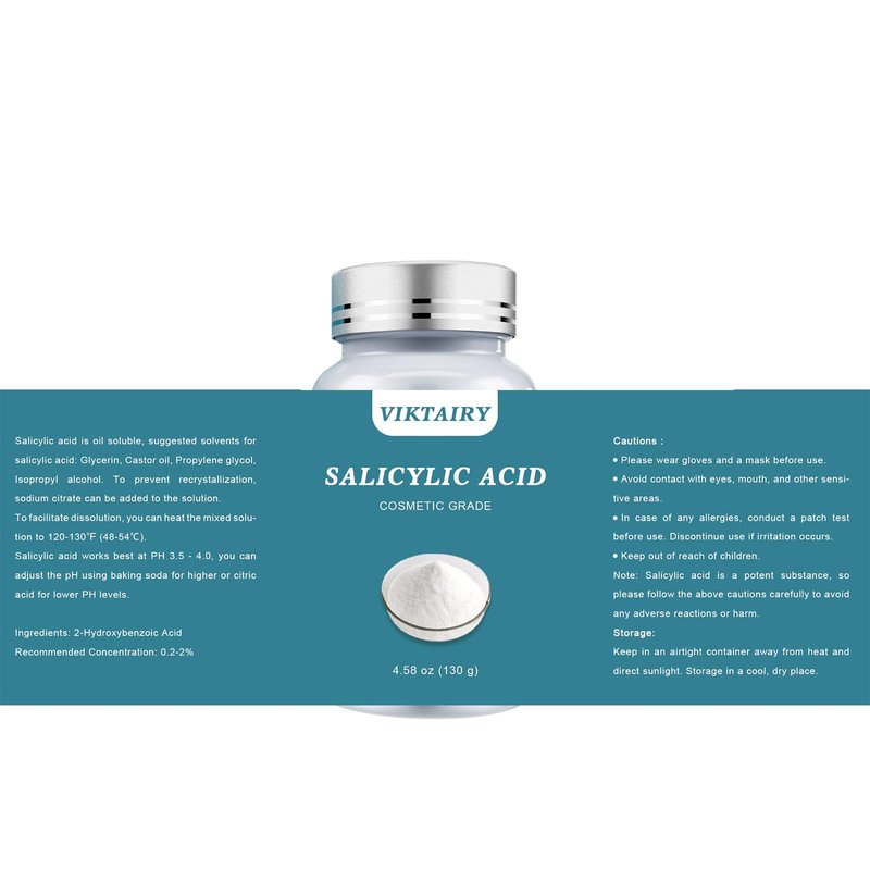 - Original Ingredients: Viktairy salicylic acid for skin is cosmetic grade, can be used in DIY cleanser, face wash, body wash, toner, spray, gel, lotion, shampoo, mask, serum, soap and face peel.