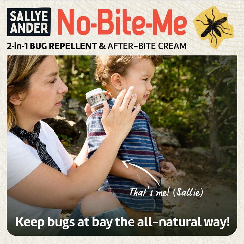 - 2-IN-1 BUG REPELLENT & AFTER-BITE CREAM: “No-Bite-Me” does it all! Our cream-based formula repels bugs AND relieves itchy, bug-bitten skin with soothing, moisturizing beeswax. Plus, it’s an all-natural bug repellent, baby safe, and beloved by moms everywhere.