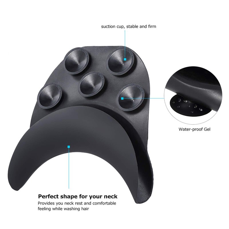 Comfortable Portable Shampoo Bowl This neck rest is made of silicone, which will make the hair washing process as comfortable as possible supporting the neck without hurting it. If you have one this shampoo bowl, your customers would thank you a lot. Fits Any Professional Salon Basin The Anself Salon Neck Rest Cushion is designed to fit over any professional salon shampoo sink. This Shampoo Bowl Neck Pillow provides optimal support and comfort to the customer, reducing pressure on the neck during washing for a gratifying salon experience. Suction Cups Won't Slip Five large suckers will keep the neck rest firmly in place so that it cannot slip or slide around when it gets wet. Therefore, there is no need for bulky fasteners that can get in the way or take up space. Effective Waterproof & Durable Use The soft silicone bath pillows provide a comfortable and waterproof neck rest. Silicone is durable and pliable so the shampoo bowl gel neck rest cushion is an excellent choice of material for this purpose. It is also chemical resistant. Easy Cleaning & Stylish Design The rubbery material is easy to wash using hot soapy water. You can remove it to clean the underside and the basin beneath. Also you can wipe this salon neck cushion with wet towers. It has a shiny black finish which is stylish, easy to keep clean and will blend in with the salon dĂ©cor. Sized-well Shampoo Bowl This sink basin tool is suitable for almost any shampoo bowls. It is 8.3â (21cm) across the top edge, the part over the basin. The length from the center top to bottom on the underneath or suction cup side in 5.5â (14cm). The length on the side without the suction cups, is 2.2â (5.5cm).