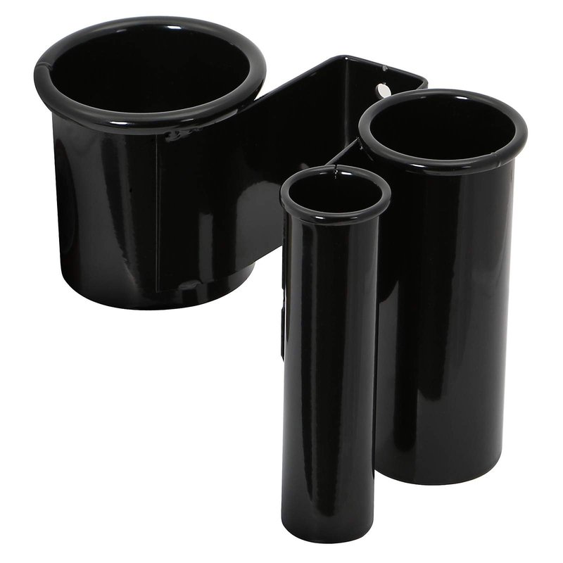 This convenient salon appliance holder is designed to store and organize blow dryers, heat irons, straightening irons, curling irons, hot combs and other accessories; it is both space saving and affordable. A 2-5/8" (Dia) x 3-1/8" (H) bottomless storage ring allows you to quickly stow and retrieve your blow dryer, including those fitted with nozzles or other attachments. It can also fit and store almost any flat or round hair iron and includes one bottomless storage tube measuring 1-1/4" (Dia), and a second measuring 1-7/8" (Dia); both are 5-1/8" (H). This appliance holder is also extremely durable; constructed from high-grade steel in a heat resistant, powder coat finish, it is quite attractive and will last for years and years. Overall dimensions: 7-1/8" (W) x 4-3/4" (D) x 5-1/8" (H). Two screws and anchors for wall mounting are included in the box.