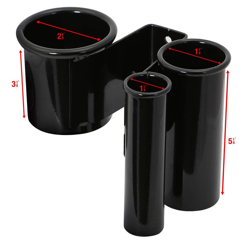 - Dimensions: Overall unit measures 7-1/8" Wide x 4-3/4" Depth x 5-1/8" Height. The three round tool holders measure 2-5/8", 1-1/4", and 1-7/8" in diameter.