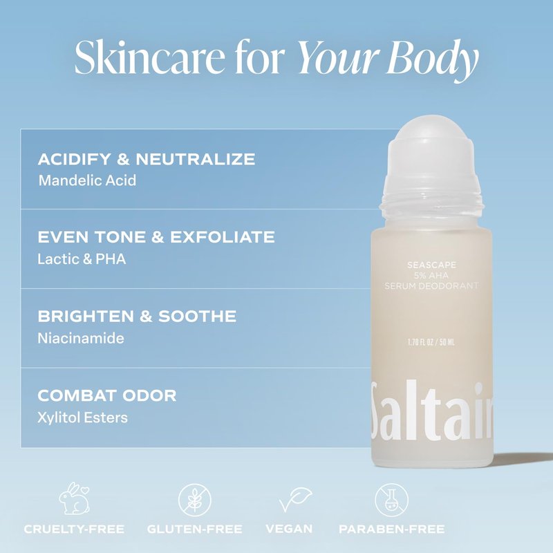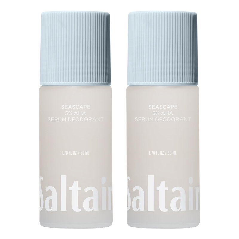Saltair Serum Deodorant Seascape 2 Pack. 5% AHA Formula. Lactic Acid and Mandelic Acid Deodorant. Aluminum Free Odor Control for Women and Men. Travel Essentials, 2x 1.7oz Roll On