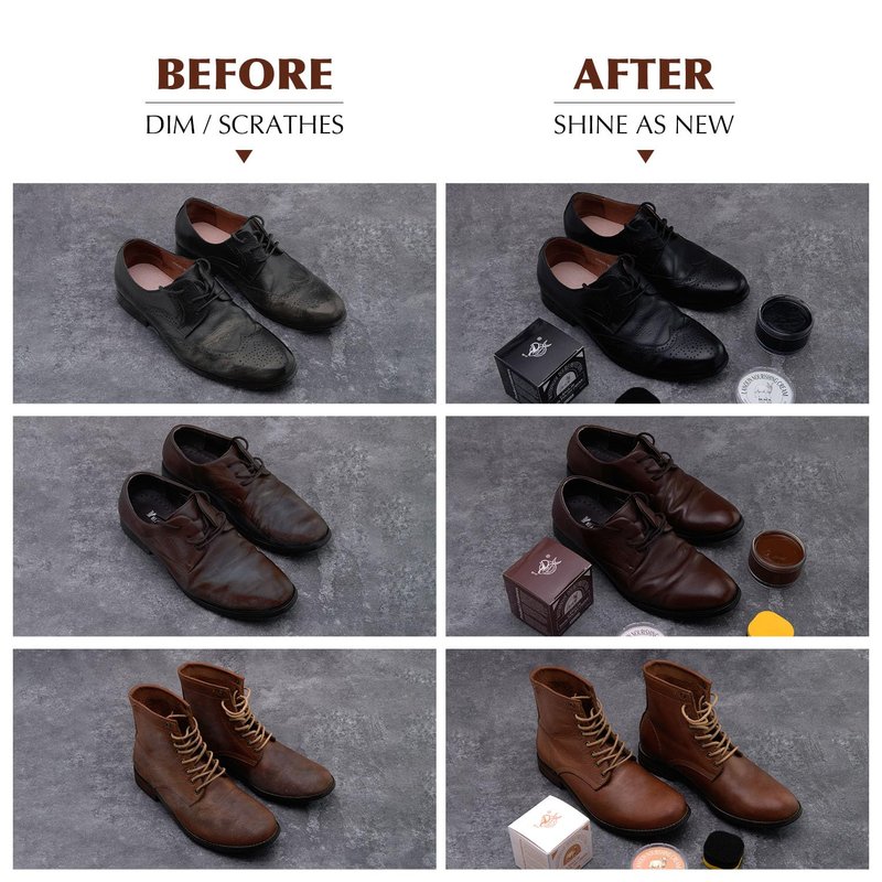 - ALL-IN-ONE AND MULTIPLE PURPOSES: More than shoe polishing, also can be used as a leather conditioner, restorer, softener, protector, suitable for various leather problems, such as cracking, fading. Deep into the leather, and restore the softness and luster of the leather. At the same time, it can also provide waterproof and anti-stain effects after use