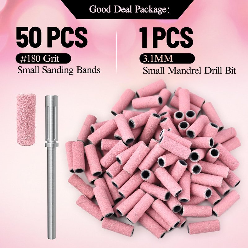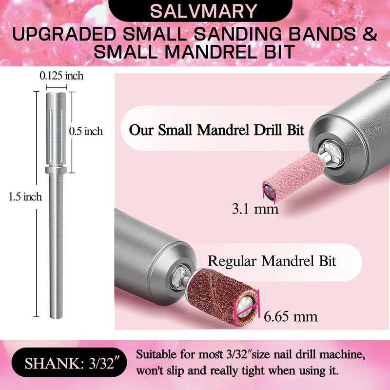 - SALVMARY Upgrade 3MM Small Nail Sanding Bands with 3.1MM Mandrel Bit Set - Come with 50PCS Pink 180 Grit 3MM Small Sanding Band and 1PCS 3.1MM Small Mandrel Bit.| Mandrel Shank Size: 3/32".