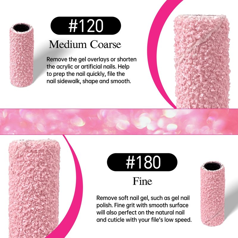 - Various Grit Options - SALVMARY offer different grit for choice. #120 Grit help to prep the nails quickly, file the nail sidewalk, shape and smooth. #180 Grit remove soft nail gel, such as gel nail polish. Fine grit with smooth surface will also perfect on the natural nail and cuticle with your file's low speed.