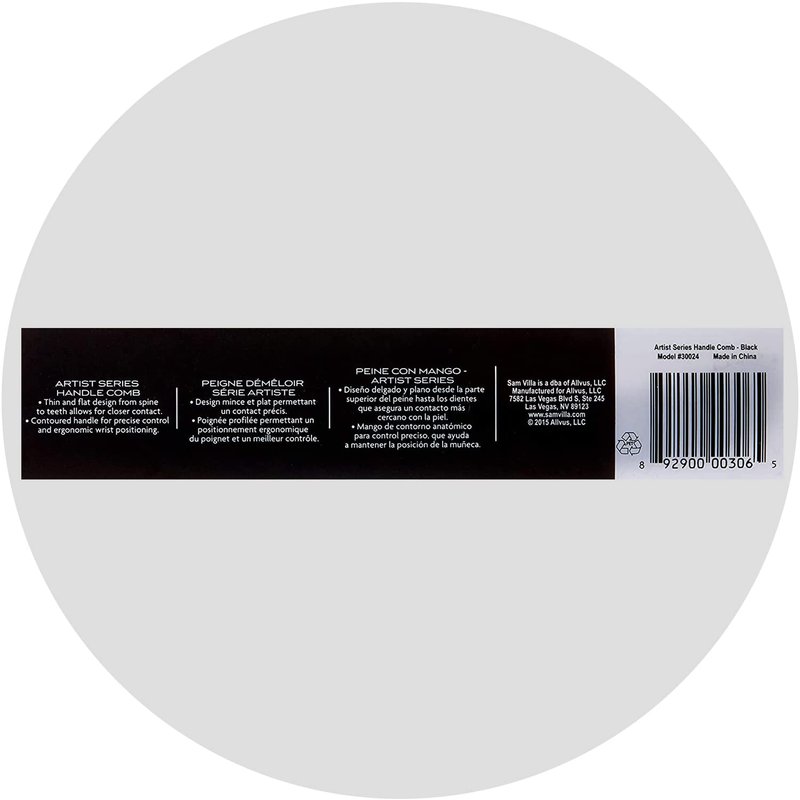 Sam Villa Artist Series Barbering Handle Comb, Black