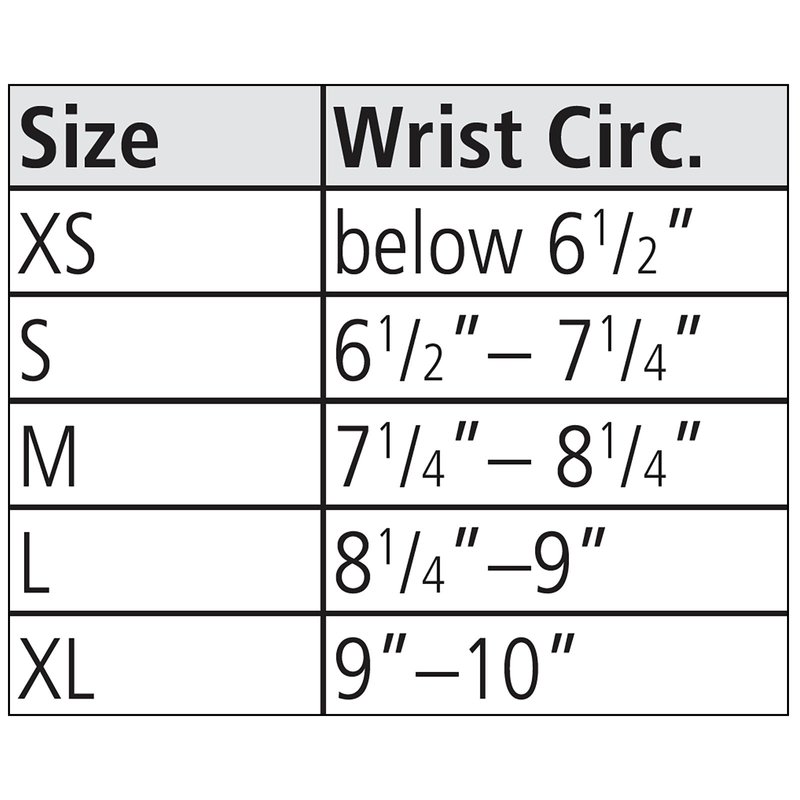 - The contoured design at the palmar crease allows full finger function while maintaining stability, medium fits wrist circumference 7.25” - 8.25”