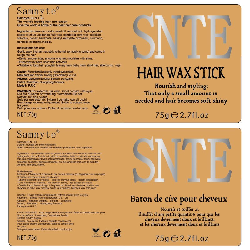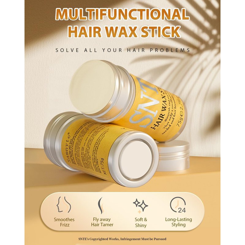 Hair wax stick features a unique formula and design to create smooth and glossy hairstyles for you. Moreover, it is enriched with nourishing ingredients that deeply moisturize your hair, making it healthier. Whether your hair is dry or damaged, our hair wax stick can repair and enhance its quality, giving you a radiant and glamorous look.
