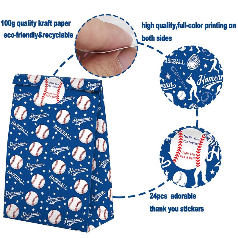 - Package Includes: 24 pack baseball party bags+24 pack stickers
